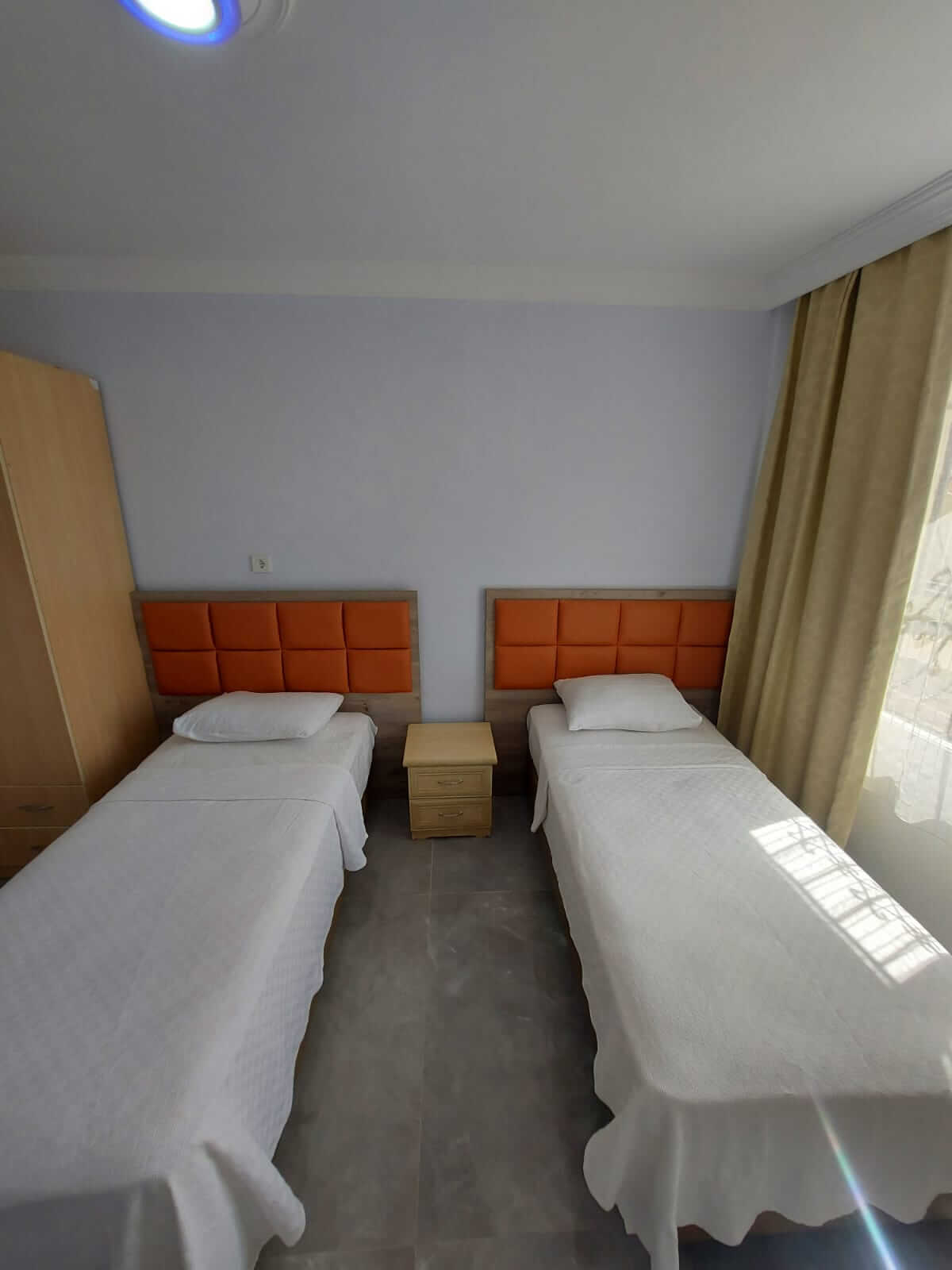 You can choose a seafront or centrally located villa with a garden. Please contact for detailed information.